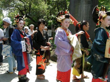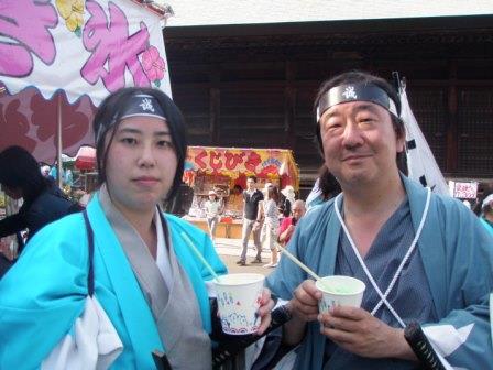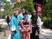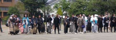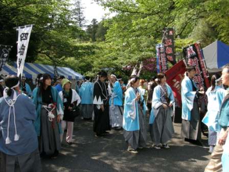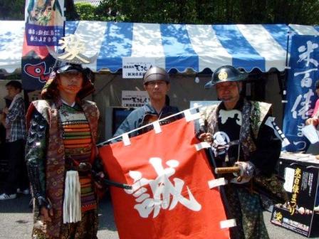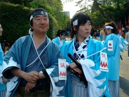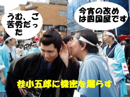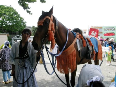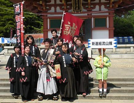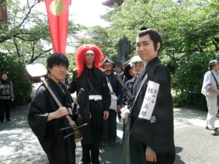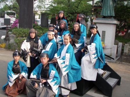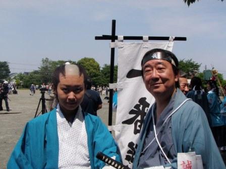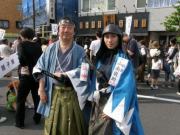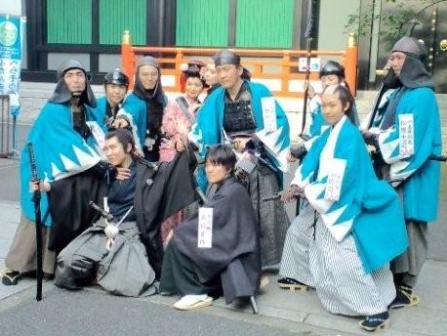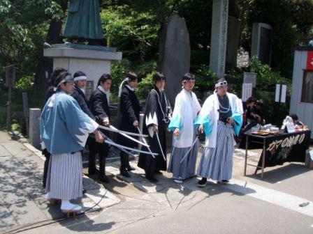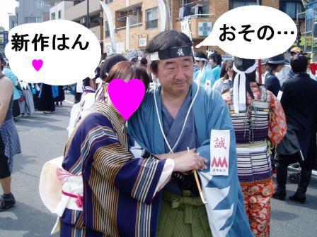 なんだそれは(笑),と噴き出す私.動物園のウサギと触れ合うコーナーみたいだ.観客の方々に囲まれる新選組隊士,やっぱり人気はミスター土方(今年のはもちろん歴代のミスターも)と綺麗どころ.たちまち大勢の人たちに囲まれている.私はというと出会った人々のところに飛んで行って,本来の仕事(笑)をしたり,恋人おその(笑)のところに行ったりして遊んでいた.