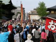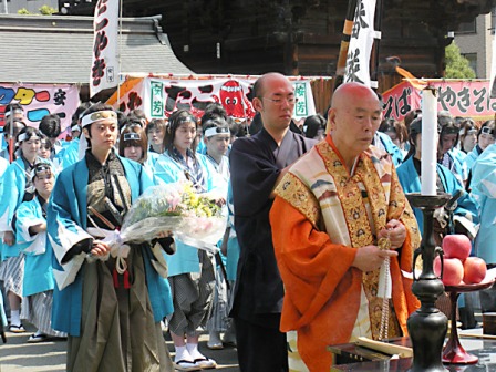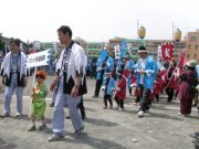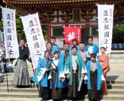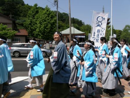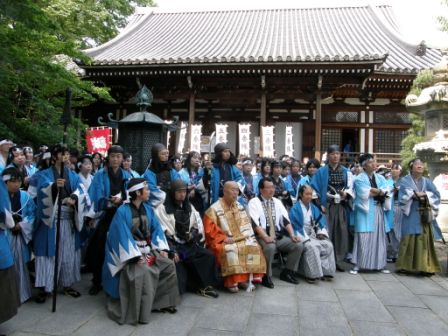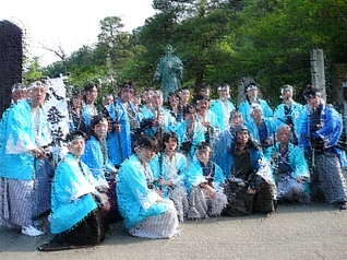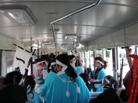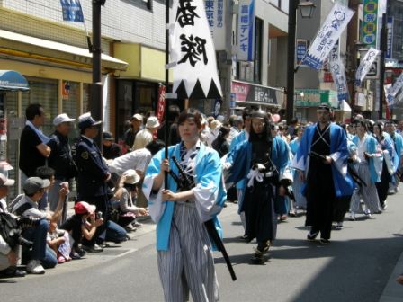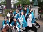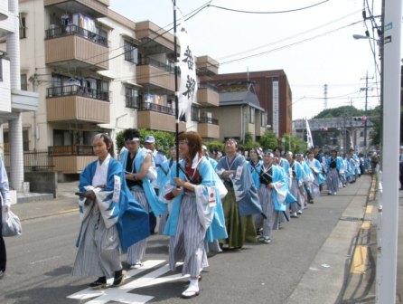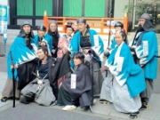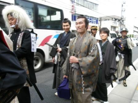 しばしの交流の後,ミスター土方の音頭による勝鬨で午後のパレードも終了となったのである.その後は一番隊からいなげや前を後にして,昨年までの日野地区パレード終盤の地獄坂をちょっとだけ歩いてバスに乗り込み,退陣式が行われる高幡不動尊に戻ったのだった. |