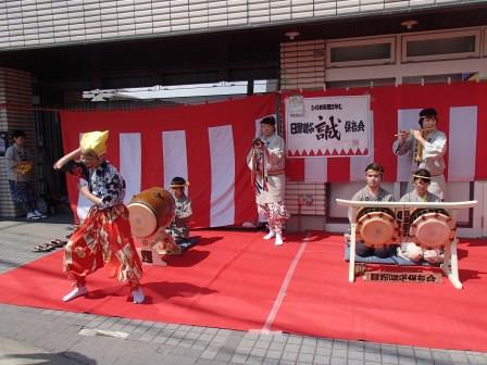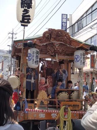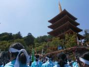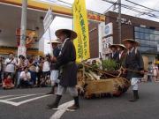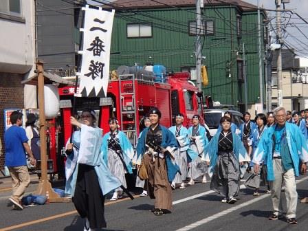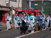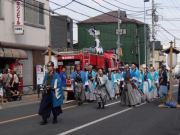 法楽が終わるといよいよパレードに出発となる.この高幡地区のパレードはかつては高幡パレードという名称だったのだが,距離が短くてあっという間に終わってしまうことから,第16回にパフォーマンスに力点を置いた(らしい)高幡パフォーマンスと改名,さらに翌第17回では参道パレードになり,今年は新たに参道パフォーマンスという名称になっていた(フランス革命後の議会みたいに名前が変換していくのが興味深い).
