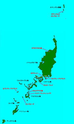 北緯3〜8度,東経134度付近にある大小300以上の島からなる諸島国家である.日本のほぼ真南3000kmにあり,フィリピンのミンダナオ島の東,グアム・サイパンなどのマリアナ諸島の南西に位置する. |