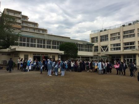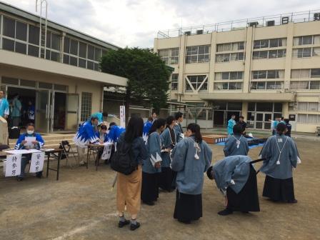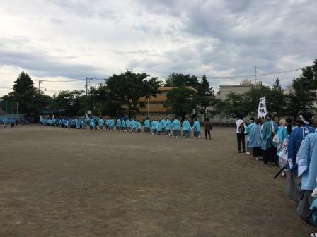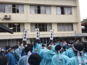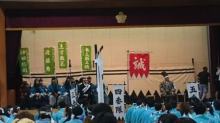 小学校の体育館は講堂も兼ねていることが多いため,舞台が併設されている.この時壇上にはミスター土方以下幹部が並んでいた.