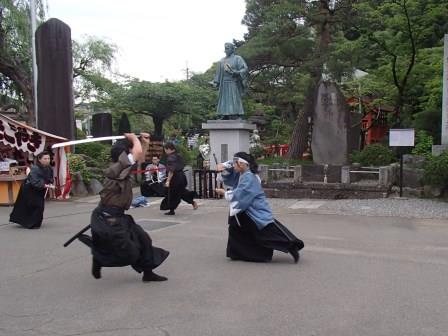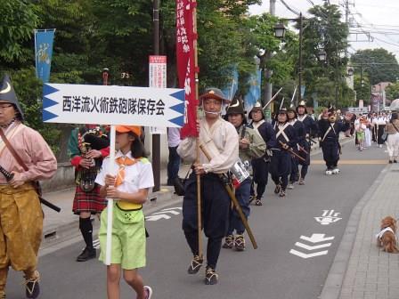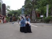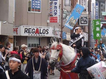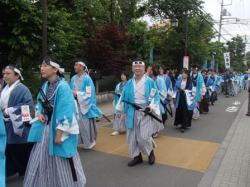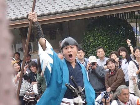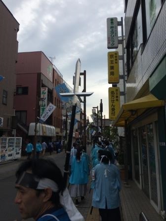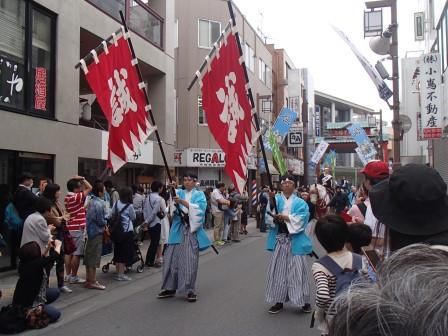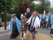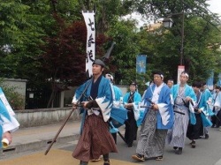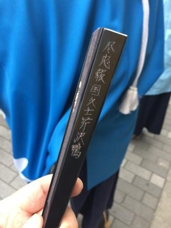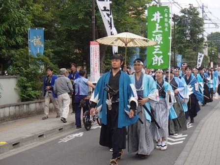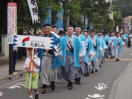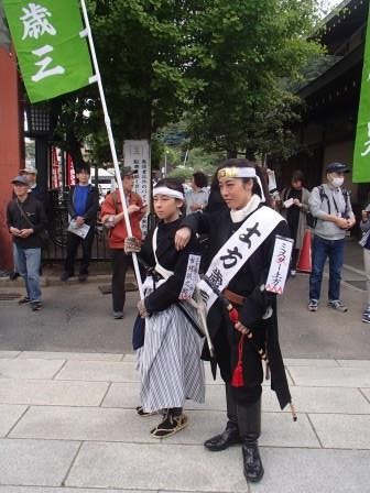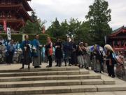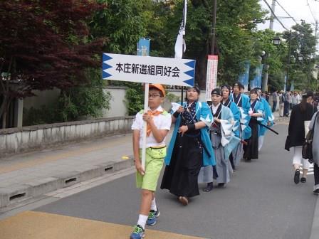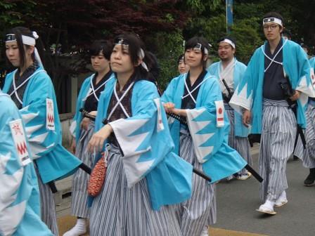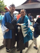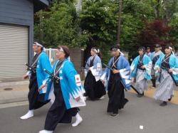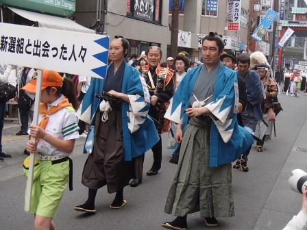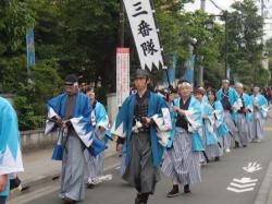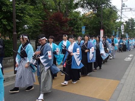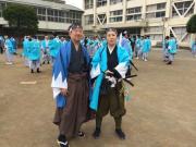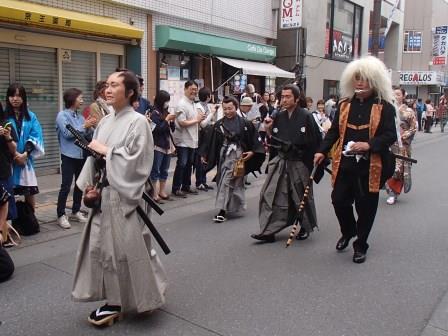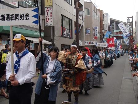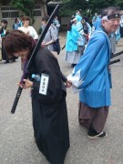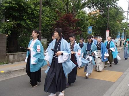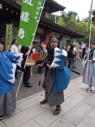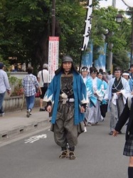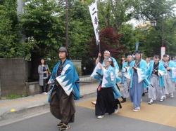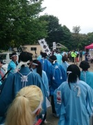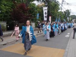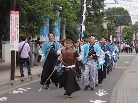 高幡不動尊で恒例の集合写真を購入して,そのまま着替え場所の潤徳小学校へ.他の隊士はほぼ到着,着替えが済んでいるらしく着替えの体育館はがらんとしていた.例年だとパレード終了後も写真を撮るのに夢中な隊士たちのために小学校の閉鎖時間間際の実行委員がヒヤヒヤするのだが,今年に限ってはその心配はないようだ.自分もさっさと着替えをして小学校を後にした.