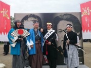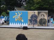 が… なぜかみんな下手側に寄っていて,上手側がきれいに空いている(上手には司会のお奉行がぽつんと座っているだけ).なんか変わった配置だなと思っていたら,後から市長さんやら実行委員会の方やらがやってきてそのスペースを埋めた.