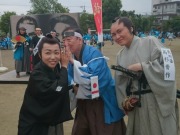 人がそろったところで閉会式(?)の開始である.実行委員会の方からこのような天気のため,パレードは残念ながら中止になったこと,これにめげず来年も来てください的なことが語られた.そしてミスター土方の挨拶へ.残念だったという気持ちが痛いほどわかる.だって参加者みんなそう思ってるんだから.ここでも来年また会おうという言葉で締めくくっていた.