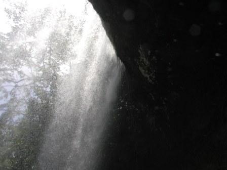 滝の裏側に入ってみると,こんな感じです.日の光をあびてとても綺麗です |