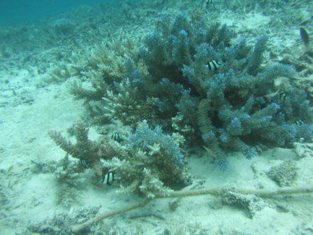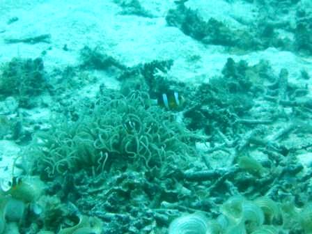 よく見ると,珊瑚の間にクマノミが泳いでいます |