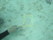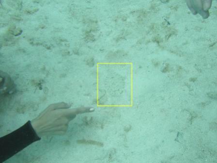 砂の中に魚が潜んでいます(黄色い枠内) |