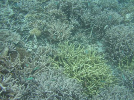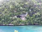 さて,噂のジェリーフィッシュ・レイクのある島へ到着である.ジェリーフィッシュ・レイクへは,船着場からしばらく山道を歩かなければならない.雨が降った後である上に,足元はビーチサンダルなので,かなり歩きにくい.しかも手にはシュノーケル用のマスクとフィンを持っている(ライフジャケットはあらかじめ着用してある)足がむき出しなので,転んだらかなり痛そうだ.そのようにして歩きにくい山道を歩いていくと,ほどなくして目的地であるジェリーフィッシュ・レイクへたどり着いた.ここに生息するクラゲ(タコクラゲの一種)は,長い間外海と隔絶されたこの環境で生きていくうちに,通常のクラゲが持っている毒のある刺胞を退化させ,体内で光合成ができるように自らの体を進化させて,現在の姿になったということである.早速我々もシュノーケルとフィンを装着し,クラゲと戯れることにした.