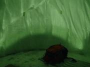 肉類は当然としてミネラルウォーターのペットボトルもカッチンカッチンである(さすがにワインや焼酎は大丈夫だった).まずは豚鍋をセット,ミネラルウォーターは凍り付いて使い物にならないため,朝ホテルを出る際に沸かしておいた象印の魔法瓶のお湯を使う.こんな寒環境に放置していたにも関わらず,中のお湯は熱いままだった(70℃はあった.さすがは象印!