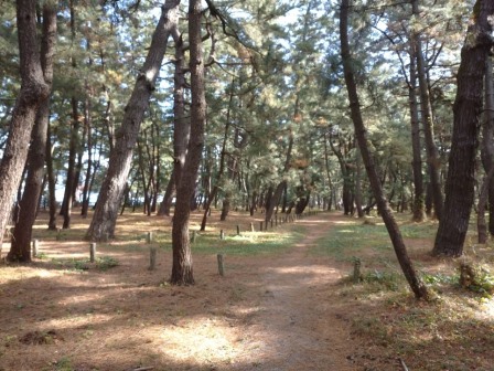 | 松林と海岸というのは昔から風光明媚な場所として知られてきた.島国であり長大な海岸線を持つ日本には全国各地にこうした海岸部の松林(松原)がある.こうした松原の中で俗に日本三大松原と呼ぶ場合には,静岡県静岡市の三保の松原,福井県敦賀市の気比の松原,佐賀県唐津市の虹の松原の3か所を指す. |