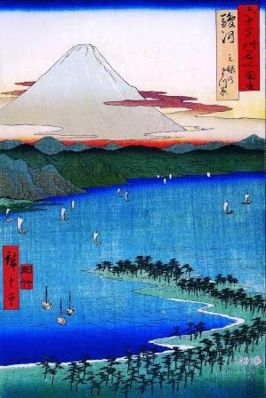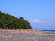 三保の松原は太平洋に面した静岡県静岡市清水区(旧清水市)の清水港を取り囲むように北東に伸びる美保半島の東側にある.約7キロメートルに渡る海岸線に3万本以上の松が茂っている.特に南側から眺めると白砂の海岸線と松林,そして富士山が同時に見られることからその絶景は江戸時代の浮世絵師歌川広重によっても描かれている.また舞い降りた天女が衣を松にかけた,いわゆる羽衣伝説の地でもあり,松林内には天女が衣を掛けたとされる「羽衣の松」がある.