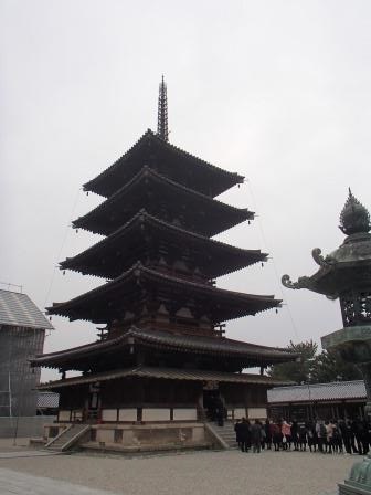 その聖徳太子が建立したとされているのが奈良県斑鳩町にある法隆寺である。創建は7世紀初頭とされる.そのもっとも古い部分が西院伽藍と呼ばれるところで有名な五重塔や金堂は聖徳太子時代のものではないが,遅くとも7世紀末には完成していたと考えられている(聖徳太子時代のオリジナルは天智天皇九年(670年)の火災で焼失している).
