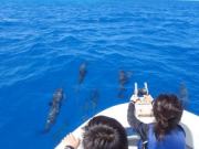 ボート周囲にイルカが! |
