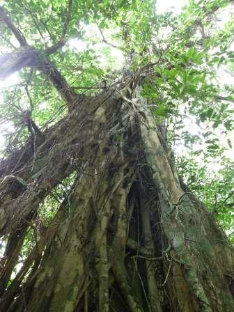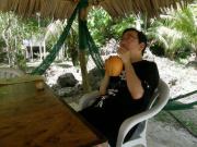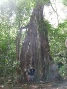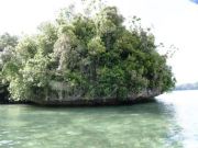 そうこうしているうちに上陸して再びジャングル歩きとなる.やがて円形の巨大が石が姿を現した.どうみても天然石とは思えないこの巨石,実はストーンマネーなんである.パラオとグアムの中間地点にヤップ島があって,ここはストーンマネーの存在で有名なのだが,実はヤップ島のストーンマネーはここパラオから切り出されたものだという.これだけ大きいと実際に流通する貨幣として役に立つのか疑問であるが,実際に当地では今でも現役で使われることがあるらしい(真ん中の穴に棒をさして持ち運ぶらしい). |
