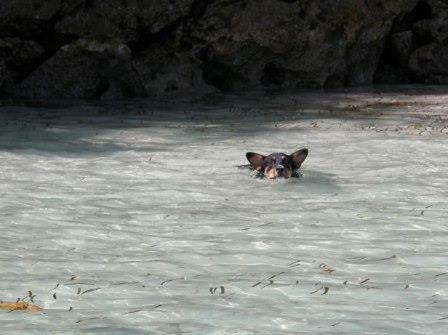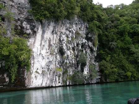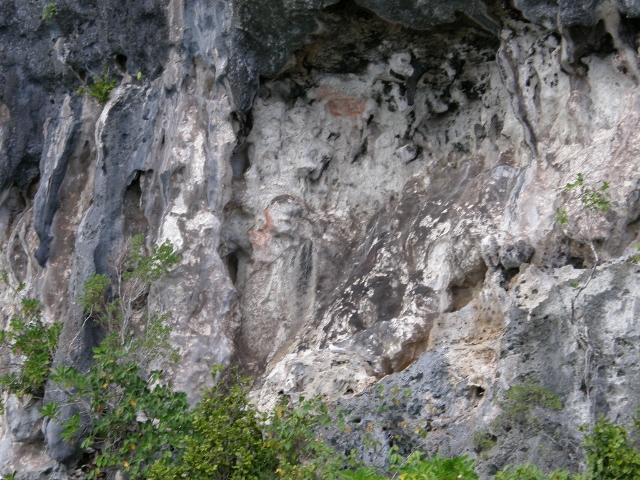 その後はさらにネイチャーアイランドの奥深くへ入っていく.このあたりの海岸には古代のパラオ人が書き残したといわれる壁画やこの周辺では珍しい白亜の岸壁なども見られた.