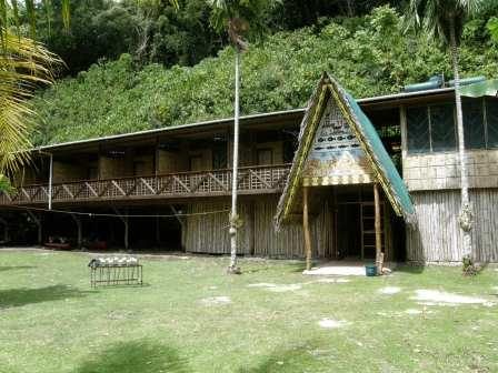 ボートを降りて数分歩き,ジャングルの中の洞窟にたどり着く.入口はさほどの大きさを感じないが中は意外に広かった(天井を小さなコウモリが飛び交っていた).ここは大戦中日本軍の製塩所があった場所である.当時製塩に使われていた設備がそのまま残されていて興味深かった(小銃弾の薬きょうも転がっていた).