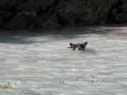 しばらくは海岸沿いに南下していたが,やがて島の切れ目のような(一応海峡といっていいのか)水道に入り,一気に探検隊ムードになる.細い水道をボートは進み,やがて最初の上陸ポイントとなった.