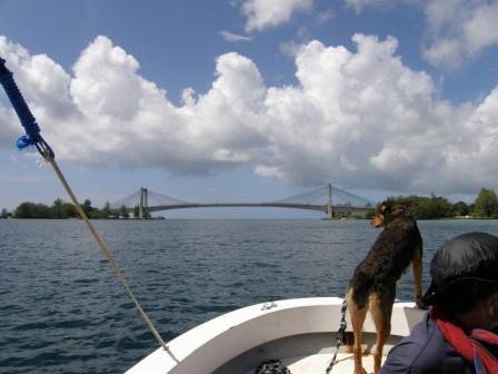 狭い水道を通る |