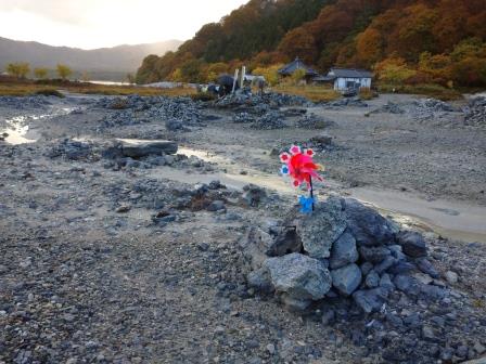 積み石と風車はもっとも恐山らしい風景 |