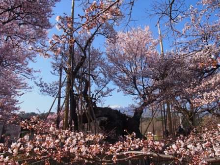こうした桜を愛でる風習は花見として現代まで脈々と続いている.日本国内に数多くの桜の名所があり,毎年多くの観桜客で賑わっているが,この中でも日本三大桜といえば,山梨県北杜市の山高神代桜,岐阜県本巣市の根尾谷淡墨桜,福島県三春町の三春滝桜の3つを指すが,この3つに共通するのは樹齢1000年を越える一本の巨木だという点である. |