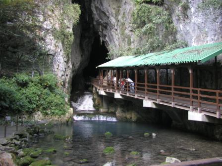 龍河洞は高知市の東部香美市土佐山田町の三宝山の山腹を流れる水が長い年月をかけて侵食して形成されたものである.その全長は4キロほどあるが,そのうち1キロほどが一般に公開されている.駐車場から長〜いエスカレーターで上に上がると,洞窟の入り口とそのそばに小さな神社がある.これが龍王神社で伝承によると,13世紀鎌倉時代に承久の乱の後,自ら土佐に配流となった土御門上皇がここに入った際,一匹の錦の小蛇が洞内を案内したという.その蛇を祭ったのがこの神社で,以来入洞者の安全守護の神として祭られているらしい.洞内には雲の掛橋,くらげ岩などの鍾乳石によってできた奇岩が多く見られる.龍河洞内も他の三大鍾乳洞と同様整備されているため,誰でも安全に観光ができるが,事前に予約することによって「冒険コース」としてより難易度の高い探索も楽しめるようになっている.