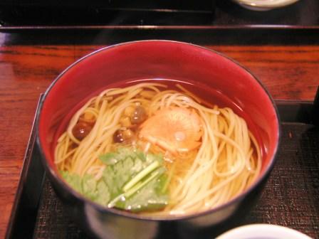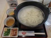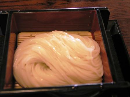 稲庭うどんの歴史は江戸時代に遡り,北前船で西国から伝わったとか,白石温麺の技術が陸路伝わったなど諸説がある.当時はほとんどが秋田藩主佐竹公による御用品として各種贈答用に作られていたという.製法も一子秘伝とされ,それが一般に公開されたのは比較的最近のことらしい.稲庭うどんの特徴は一週間近く熟成して造られる手延べの麺にある.讃岐うどんや後述の水沢うどんに比べると非常に細く,コシとともにのど越しのつややかさがいい(JASの規格ではかろうじてうどんに分類されるらしい). |