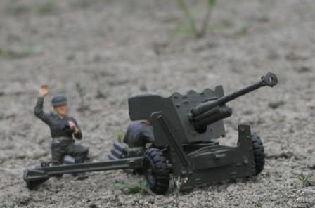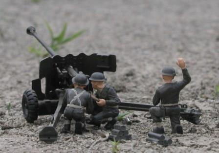| ドイツ軍や日本軍の火砲はその口径で呼ばれるのが基本である(37mm対戦車砲,15cm高射砲など).一方イギリス軍は使用する砲弾の重量で呼ぶことが多い.ここに掲げた対戦車砲は6ポンドの砲弾を使用する対戦車砲である.ちなみに口径は57mmだそうである.57mm砲といえば日本の九七式中戦車の戦車砲と同じであるが,この砲は初速815m/sと高速で,距離455mで81mmの装甲を撃破することができた優れものであった.ドイツのPaK