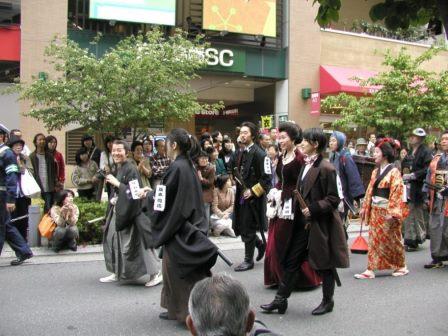 新選組流山隊の方々.その前に玉造隊,後方に滝野川新選組隊. |