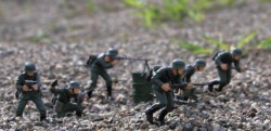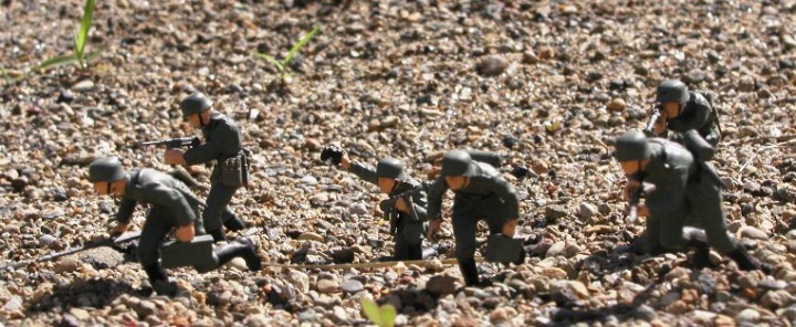 田宮の35分の1シリーズは特にドイツものが充実していたが,ここに挙げた進撃・突撃セットもそのひとつである.本来は進撃セット,突撃セットと別々のアイテム(それぞれ8体ずつ人形が入っていた)であるが,似たような格好の兵からなっているため区別するのが大変なのと,長い年月で紛失してしまったものも多いため,ここではひとまとめにしてある.