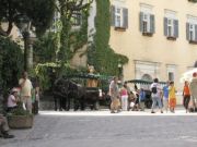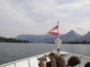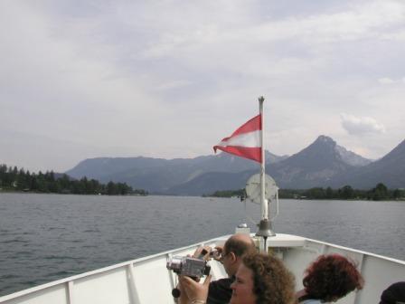 間もなく船はザンクト・ヴォルフガングへと向けて動き出した.所要時間は約30分である.湖ではいたるところで,泳いだりボートやヨットで遊んだりしている人々の姿が見える.オーストリアには海はないので,この辺の人達は泳ぎたい時はここへ来るのであろう.ちょうど夏の田沢湖と似たような感じである.船の中で我々は,丁度そばにやって来たガイドさんに,今朝のザンクト・セバスチャン教会での話をし,レオポルトの石版の行方について知っているかどうか訊ねてみたが,この人もずっとそこへは行っていないらしく(日本のツアー会社の市内観光でもコースに入っていないらしい),詳細はわからないとのことであった.