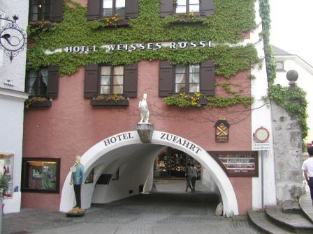 ここが,ベナツキーのオペレッタ「白馬亭にて」の舞台となったという,有名なホテルWeissen Rössl(白馬亭)です.格式が高そうです |