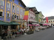 教会を見学した後我々は街中を歩きながらバスを目指した(ザンクト・ギルゲンで我々を下ろした後,先回りして待っていたらしい).バスに乗って次に向かうのはモントゼーの町である.モントゼーとは日本語で「三日月湖」という意味で,その名の通り三日月形をした湖の畔にある町である(昔のドラゴンクエストにでてきたリムルダールの町や,FFⅠのクレセントレイクの町を髣髴させる).ここには映画「サウンドオブミュージック」でマリアとトラップ大佐の結婚式のシーンが撮影された教会がある.一般にヨーロッパの教会には内部の撮影お断りとされているところも多いのだが(先のザンクト・ヴォルフガングの教区教会もそう),ここモントゼーの教会はすっかり観光地化されたためか,撮影可であった(我々も中を見学したり,写真を撮ったりした).ところで,日本では非常に人気の高いサウンドオブミュージックであるが,実は地元オーストリアではあまり知られていないのだという.意外な気もするが,ひとつには映画のドイツ語版ができたのが遅かったことがあるらしいが,その一方で映画のテーマが,ナチスの迫害から逃れる一家というものであることも関係しているのだろう.何と言ってもオーストリアにとって,ナチスはできれば触れたくない歴史であろうから.