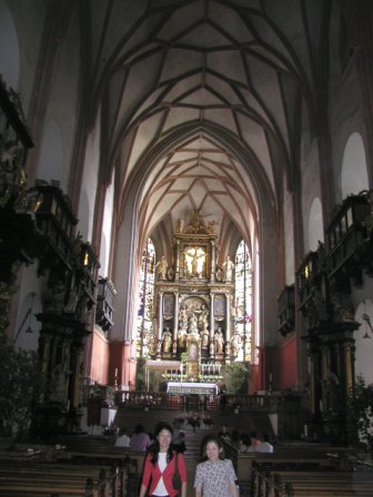 さて,ここザンクト・ヴォルフガングの見どころが,教区教会にあるミハエル・パッハー製作の祭壇である.15世紀に製作されたというから,ゆうに500年以上前のシロモノだ.この祭壇はオーストリアでもっとも重要な文化財のひとつらしい.なんでも,後から作り直そうという企画も出たのだが,パッハーの作のあまりの素晴らしさに,断念したとのウワサもある. |