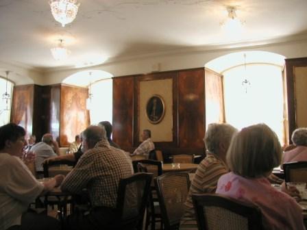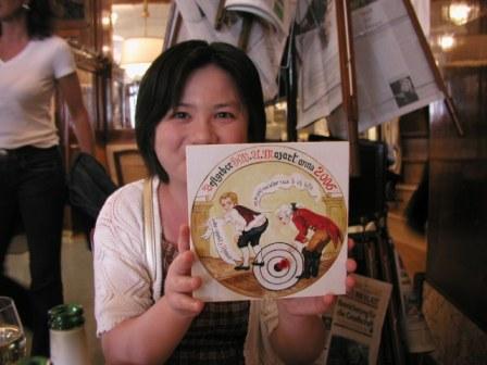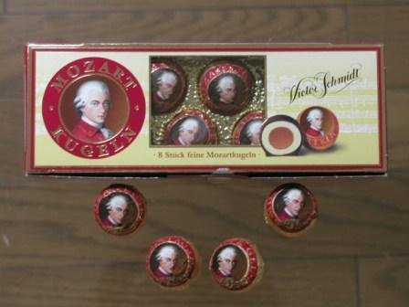Kugeln)を推薦していた.モーツァルトクーゲルンはモーツァルトの絵が描かれたチョコレート菓子で,オーストリア土産の定番ともいえる商品である.あのモーツァルトの顔が描かれた赤と金の包み紙のお菓子を見たことがある人は多いだろう.しかし,この赤いモーツァルトの顔が描かれたモーツァルトクーゲルン,実はゾロ品なのである.本家本元のモーツァルトクーゲルンは,ここザルツブルグにある”フュルスト”というカフェで作られたものであり,銀紙に包まれて全体的に青っぽい色調となっている.一つ一つ手作りらしく,形も真球には程遠く,値段も高めなのであった(ゾロ品のクーゲルンは空港はじめ,いたるところで購入できるが,本家のクーゲルンはザルツブルグの店でしか手に入らない.我々もザルツブルグに戻ってすぐに”フュルスト”に直行したことはいうまでもない). |