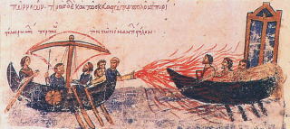 注2) 帝国を何度も危機から救ったといわれる秘密兵器.筒のようなものから,火炎放射器のように火を噴出すように使ったらしい.水をかけても消えず,かえって燃え広がったという.「燃える水」,「液体の炎」とも呼ばれる.生石灰,松脂,石油,硫黄などを原料としていたといわれているが,門外不出とされ,帝国の滅亡と共にその製法も失われてしまった. |