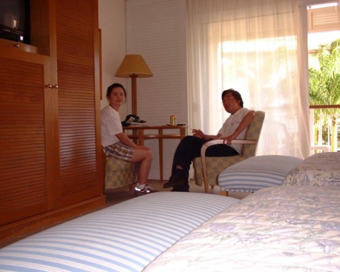 ホテル前にて.ここが我々にとっての初めてのリゾートホテルであった.