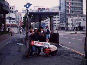 切符をゲットしたM,その後方のハンチング帽が私である. |