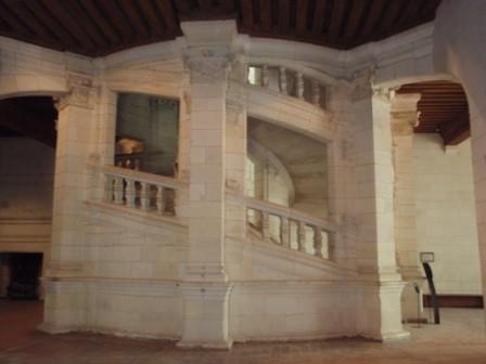 中に入ると,感想は「広い!」であった.城内には大小400以上の部屋,80箇所以上の階段があるなどとにかく広いのである.フランソワ1世も城のすべてを把握していなかったに違いない(笑).そして城の中央にあるのが,この城最大の名物のらせん階段である.これは一説にはフランソワ1世と親交のあったイタリア人レオナルド・ダ・ビンチが設計に関わったとも言われている不思議な階段のことで,2本のらせん階段がちょうどDNAのように組み合わされた構造をしており,塔を上る人と下る人が途中で出会わないようにできているのだった.実は似たような概念の建物が日本にも存在する. |