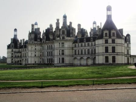 シャンボール城はロワール川では最大の規模を誇る城郭である.16世紀フランスを代表する国王フランソワ1世(ハプスブルグ家のカール5世と神聖ローマ皇帝位を争ったことで知られる)が造ったといわれている.イタリア・ルネサンス様式の城郭ではあるが,温暖なイタリアの建築技法を寒い中央フランスに持ち込むのは無理があったのか,実際に人が住むには不便な城であり,当のフランソワ1世もわずかな期間しか滞在していなかったらしい.