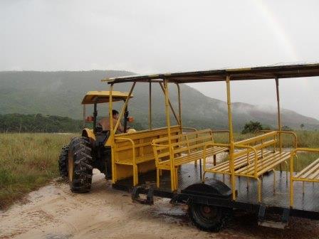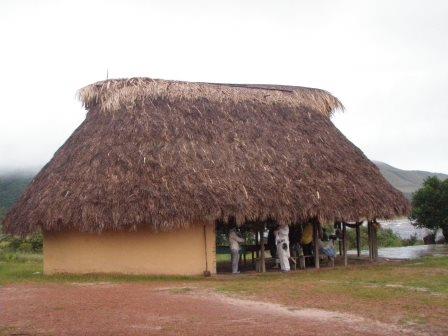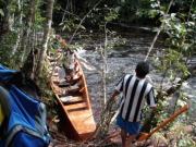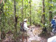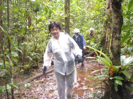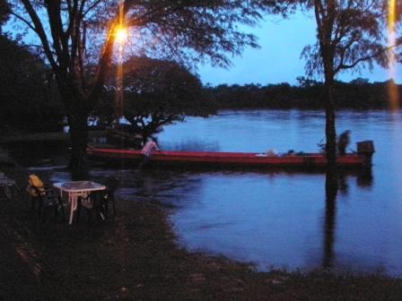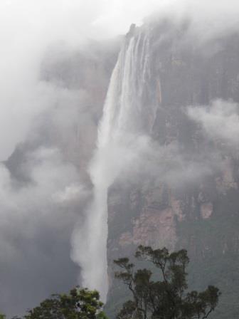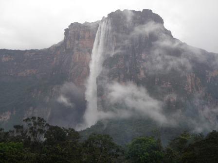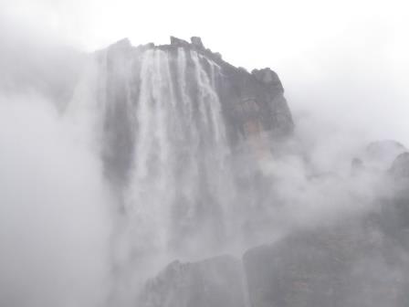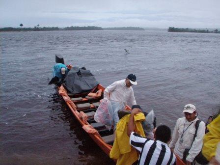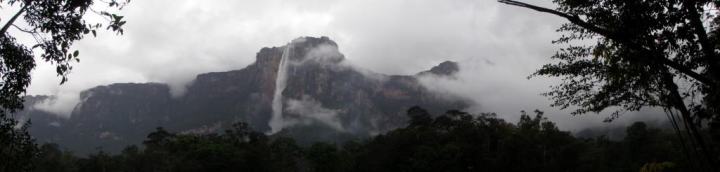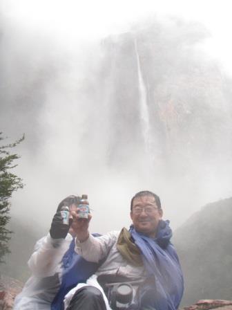 チュルン川に入って1時間ちょっとでエンジェルフォールが間近に見えるラトン島に到着である.ここはエンジェルフォールの眼前に位置する中島であるが,今回我々が拠点とするのはここではなく,島近くの河岸にあるウカイマ2という宿泊可能なロッジである.ここはその名の通り,我々が滞在しているウカイマ・キャンプと同系列で,食事のできる東屋に加えてきちんとしたトイレもあった.このウカイマ2でトイレ休憩を取り(ここから先トイレはない),不要な荷物を置いていよいよエンジェルフォールへのトレッキングに出発である. |
