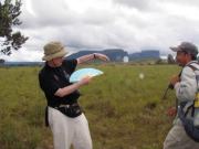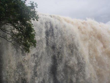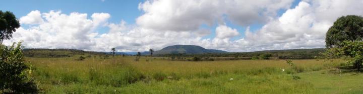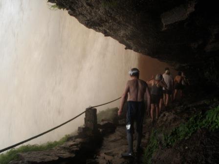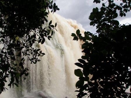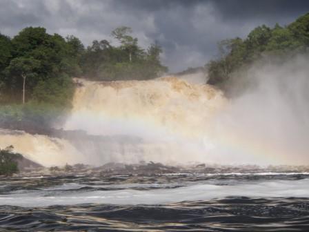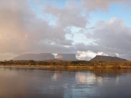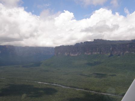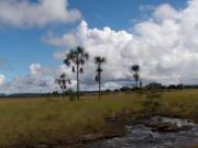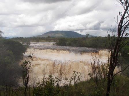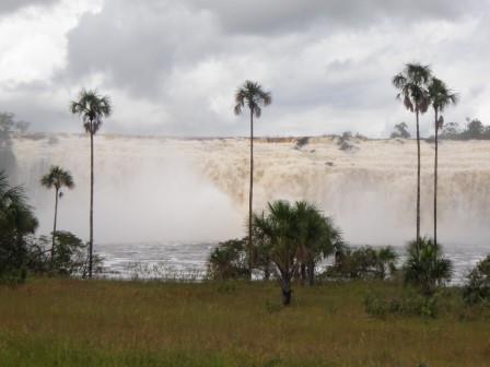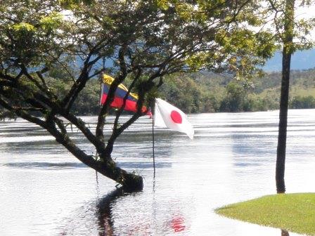 遊覧飛行の時間は午前11時ごろということで,その前にホテルの対岸にあるペモン族の集落を訪ねることにした.例によってボートで川に出て,カラオ川の中の島のような部分に渡った(後で地図で確認したら,ここはアチャの滝やサポの滝の背後にあたる場所だった).
