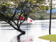ホテルの前にはこの日の宿泊客の国旗が |
