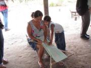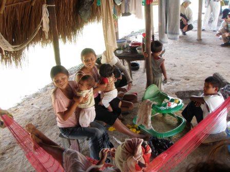 この地域の女性は10代で子供を産むのが普通らしく,家長のおばあさんも15人も子供を産んでおり,現在31歳の長女さんはすでに孫がいるという話だった.テーブルを使う生活などは我々の違いはないが,ただしこの家にはベッドがなく寝るのはハンモッグである.これは地面に多くの蟻がいるためにベッドだとその襲撃を受ける可能性が高いからと思われた.実際ここの女性はハンモッグ用の布を作っていた.