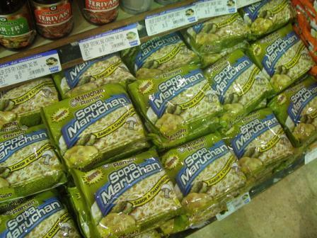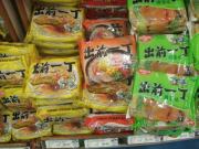 一方即席めんのコーナーでは,まるちゃん(東洋水産)の海外向けブランドの他に私の目を引いたのが,日清食品の出前一丁である.日本では出前一丁といえばゴマラー油の付いたしょうゆ味のものと決まっているが,海外特に中華圏ではさまざまな風味の出前一丁が発売されていて人気を博しているらしい.ここのスーパーにも様々なバリエーションの出前一丁が売られていた.私が喜んで購入したのはいうまでもない.