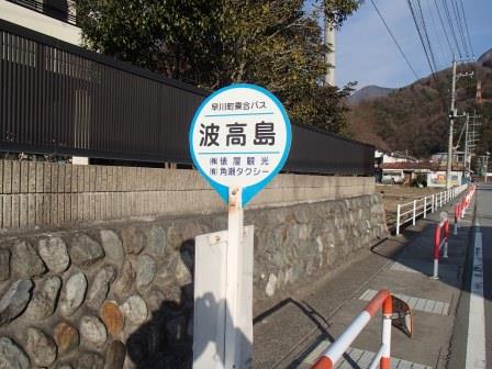 駅前の道をさらに進むと「波高島」のバス停もあった.ということは,バスに乗っても「次は波高島です」という案内放送が聞けるということで,機会があれば乗ってみたいなと思った.