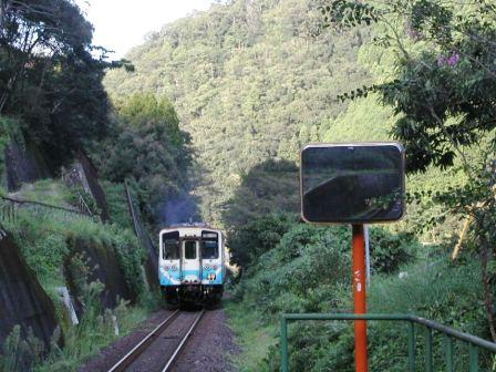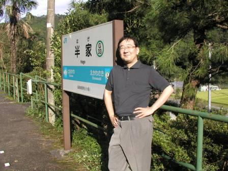 | はげ(半家)駅はJR予土線の駅である.予土線は愛媛県の宇和島駅と高知県の窪川駅を結ぶ約80kmのローカル線であり,途中に大きな町はない.電化もされておらず,最近では”赤字→廃止”の噂も聞こえてくる路線である.ローカル線特有の1両編成のディーゼルカー(1両しかなく,列をなしてはいないから列車とは言えないよなぁ,ただの車か?)は80kmを2時間かけて走っている. |