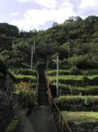 はげ駅で途中下車してあたりを見渡すと,一面に緑が広がっている.駅の周囲には栗の木も多く,斜面に沿って段々畑のように石垣もある.こういう所に普段住んでいる東北とは違った,古くから人の手が入っている形跡を感じるのであった(JR山田線のローカル駅には全く人の手が入っていない).駅から長い階段を下りて道路に出ると,目の前には大きな川が流れていた.これが有名な四万十川である.四万十川といえば中村が有名であるが,実は予土線のはげ駅付近は四万十川の中流域に当たるのであった.