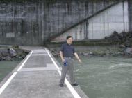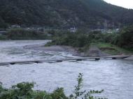 さて,四万十川といえば沈下橋が有名である.これは,しばしば氾濫を起こす四万十川に対して,普通の橋を架けても流されてしまうため,流されないように水面に近い,欄干のない橋を架けたものである(水に対する抵抗を極力減らすとこういう形態になる).増水時には橋ごと水中に隠れてしまうことから沈下橋と呼ばれ,この四万十川には全部で47本の沈下橋があるそうだ.ここはげ駅近くにも”長生沈下橋”がある.私が訪ねたのは丁度大雨の直後だったため,残念ながら「清流四万十川」ではなかったが,橋のすぐ近くまで増水しており,本当の沈下橋になる直前の光景が見られたのであった.