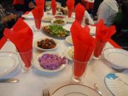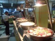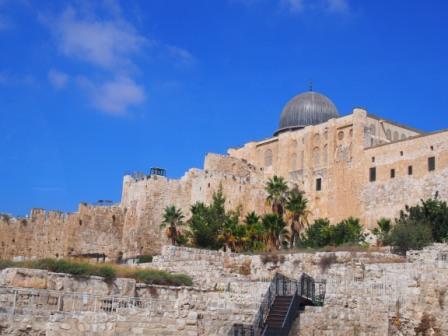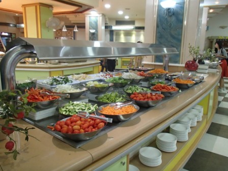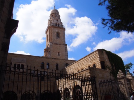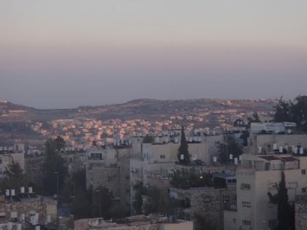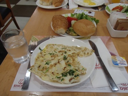 | 部屋に入ってシャワーを浴び,しばらく寛ぐ.やがて日没となり夕食のレストランへ.ブッフェスタイルは昨日までのホテルと大差ない感じだったが,この日は正装した見るからにユダヤ人という家族が多い.聞いてみたら,安息日は夕食の支度などもしてはならないため,こうしてホテルに泊まる人たちがいるんだそうである.まさにユダヤ的発想! もちろんお金がなければ不可能だが,こういうのもありだなと感心したのだった.結局この日もワインを1本空けた我々だった.さあ,明日はエルサレム旧市街の観光である. |