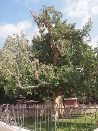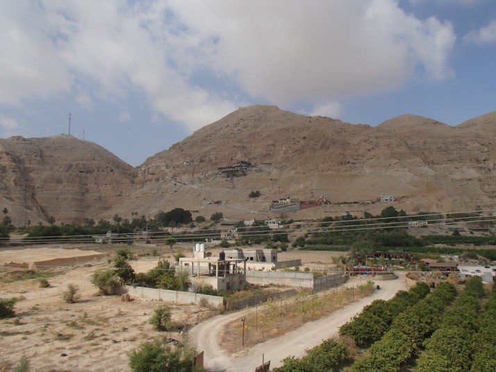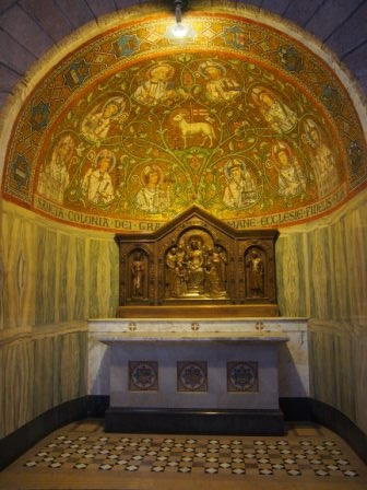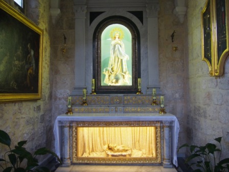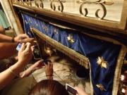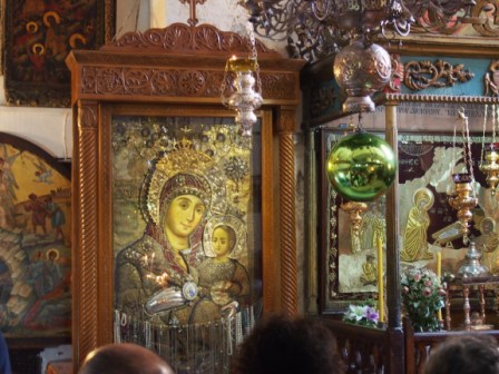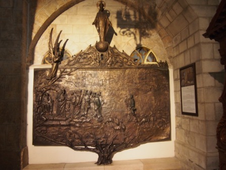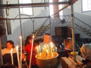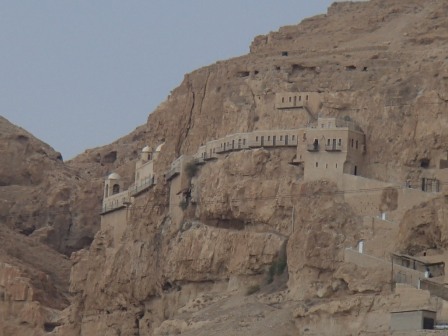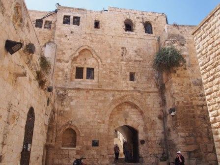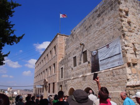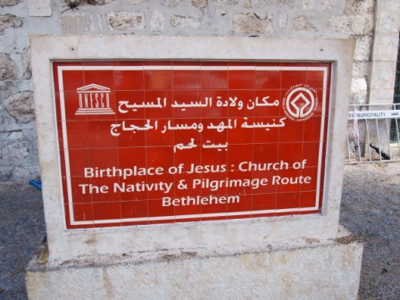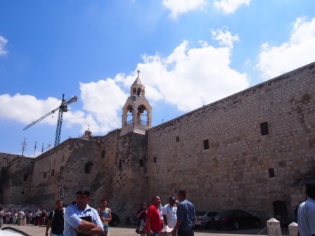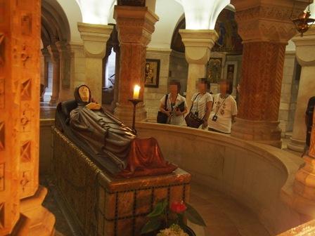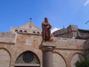 聖誕洞窟を抜けて次は隣接するカトリックの聖カテリーナ教会に入る.ここの中庭には聖ヒエロニムスの像が立っている.5世紀初頭にヘブライ語・アラム語の聖書をラテン語に翻訳した人物である.像の足元には頭蓋骨が置いてあるが,これは彼の翻訳作業に協力したローマの女性パウラのものである).